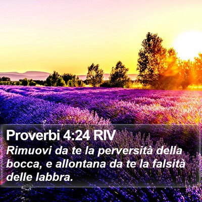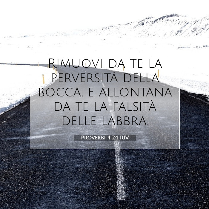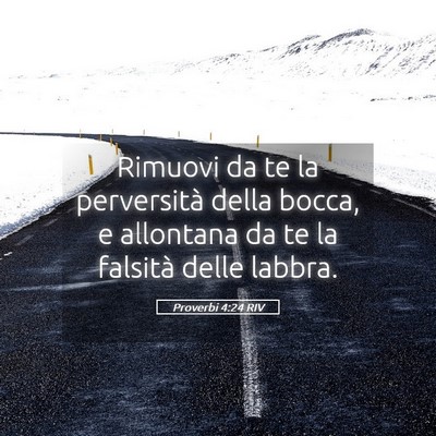 Il versetto Proverbi 4:24 dice: "Allontana da te la bocca falsa e le labbra perfide allontana da te." Questo versetto ci esorta ad evitare parole e conversazioni ingannevoli e dannose. L'importanza della parola è un tema ricorrente nella Bibbia, e questo versetto sottolinea il potere che le parole possono avere su di noi e sugli altri.