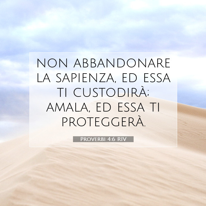 Proverbi 4:6: "Non abbandonarla, ed essa ti custodirà; amala, ed ella ti proteggerà."